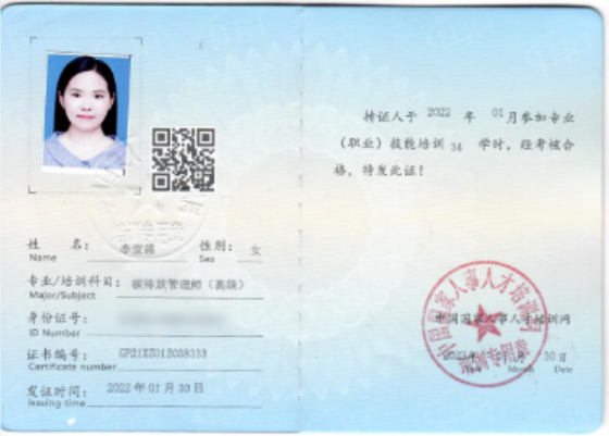 为培育合格的碳排放管理专业技术人才,助力我国“双碳目标”早日达成,华喻燃能先后组织6名从业人员参加中国国家人事人才培训网及湖北碳排放权交易中心组织的碳排放管理师培训,获得高级碳排放管理师专业技能岗位证书。我司将立足新发展阶段,贯彻新发展理念,构建新发展格局,坚持系统观念,以经济社会发展全面绿色转型为引领,以能源绿色低碳发展为关键,持续稳定地为低碳领域输送“新鲜血液”。