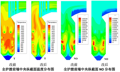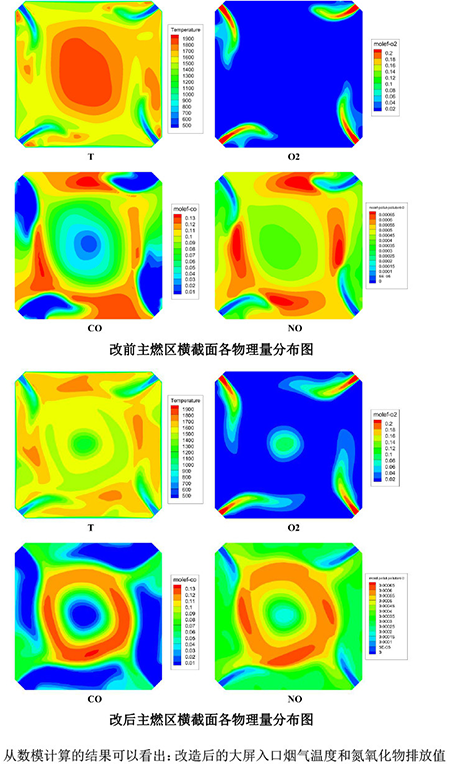 从数模计算的结果可以看出:改造后的大屏入口烟气温度和氮氧化物排放值均好于改造前。锅炉运行中主要的问题是氮氧化物的排放高和脱硝入口的烟气温度高。炉膛出口温度对脱硝入口温度的影响很小,但为了能尽量降低其影响,还是希望在不影响过热气温的前提下,最好选择炉膛出口温度较低的改造后工况。另外,三次风温度是90℃,送入炉膛中对煤的着火不好。其引入到炉膛中间位置对低负荷的稳定燃烧一定会有影响。放在燃烧器的最低层,对稳燃影响小,放在最上面,上面的温度高,对燃烧的影响也很小。